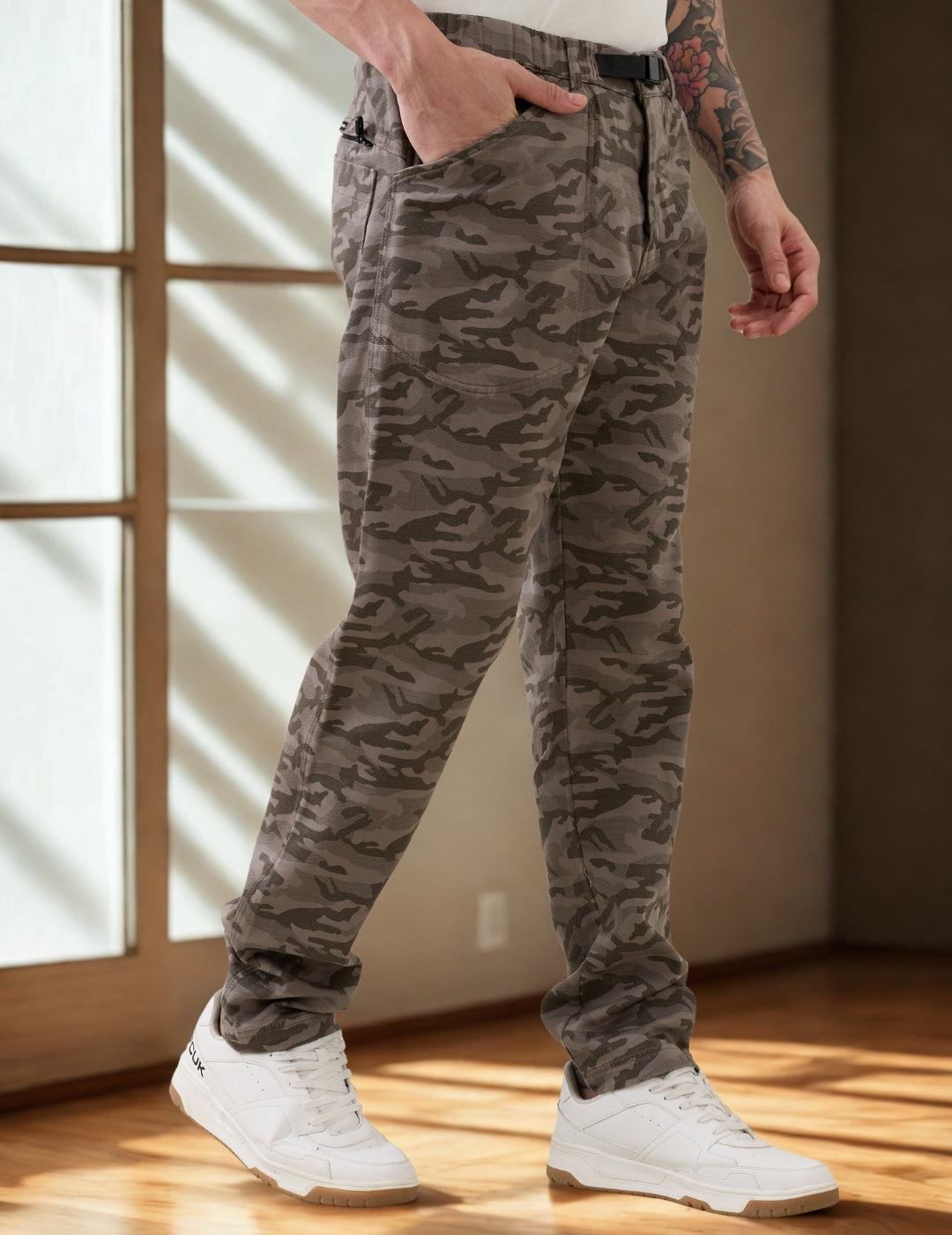 Crimson Cotton Camouflage Cargo: Light Olive