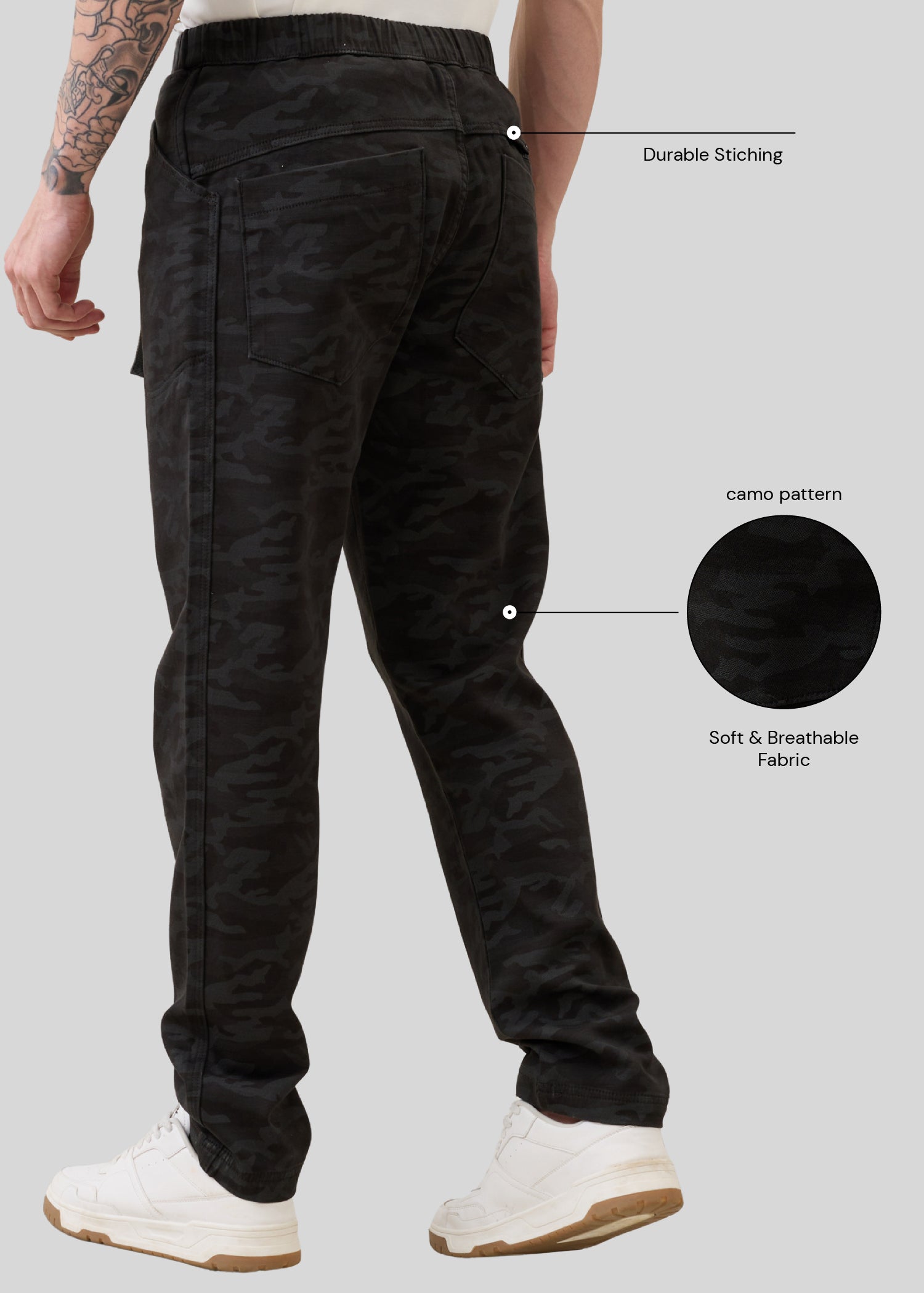 1. Camouflage Design: Features an all-over camo pattern for a bold, street-ready look.
