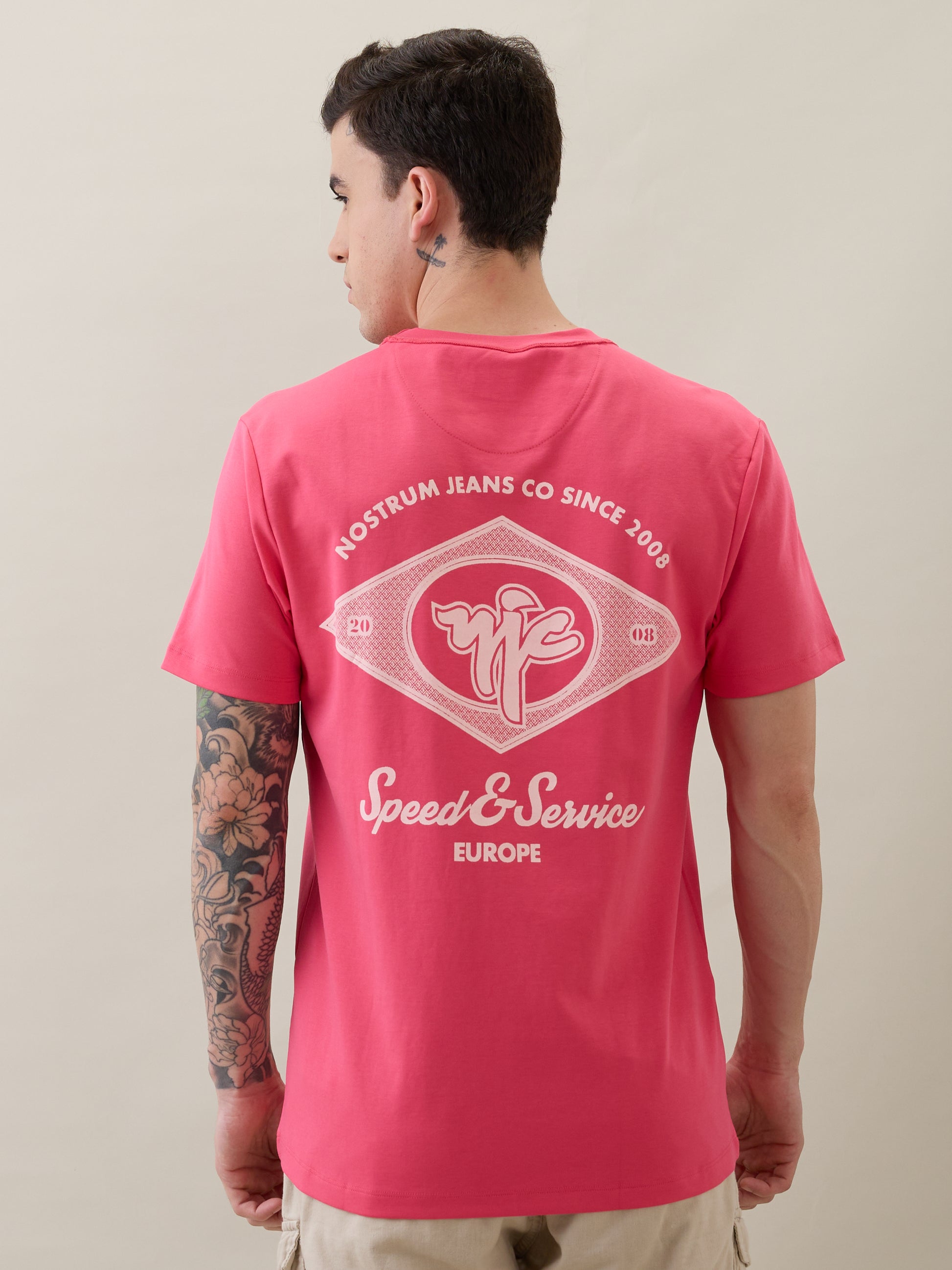 The Nostrum Discrete Tee in Pink brings playful confidence to minimal streetwear. Its highlighter-inspired hue is eye-catching yet refined, while the graphic print on the back adds depth to the design without overpowering it. Soft, breathable fabric and durable construction ensure all-day comfort, making this tee a perfect mix of bold colour and effortless style.