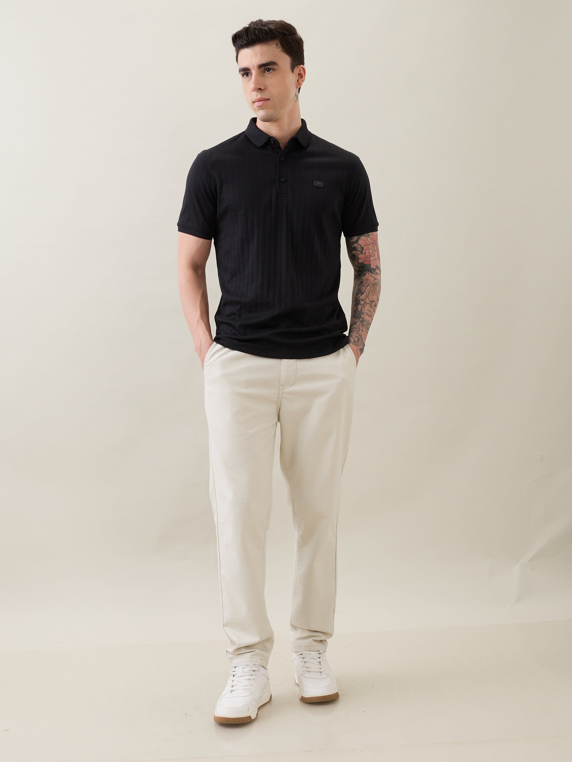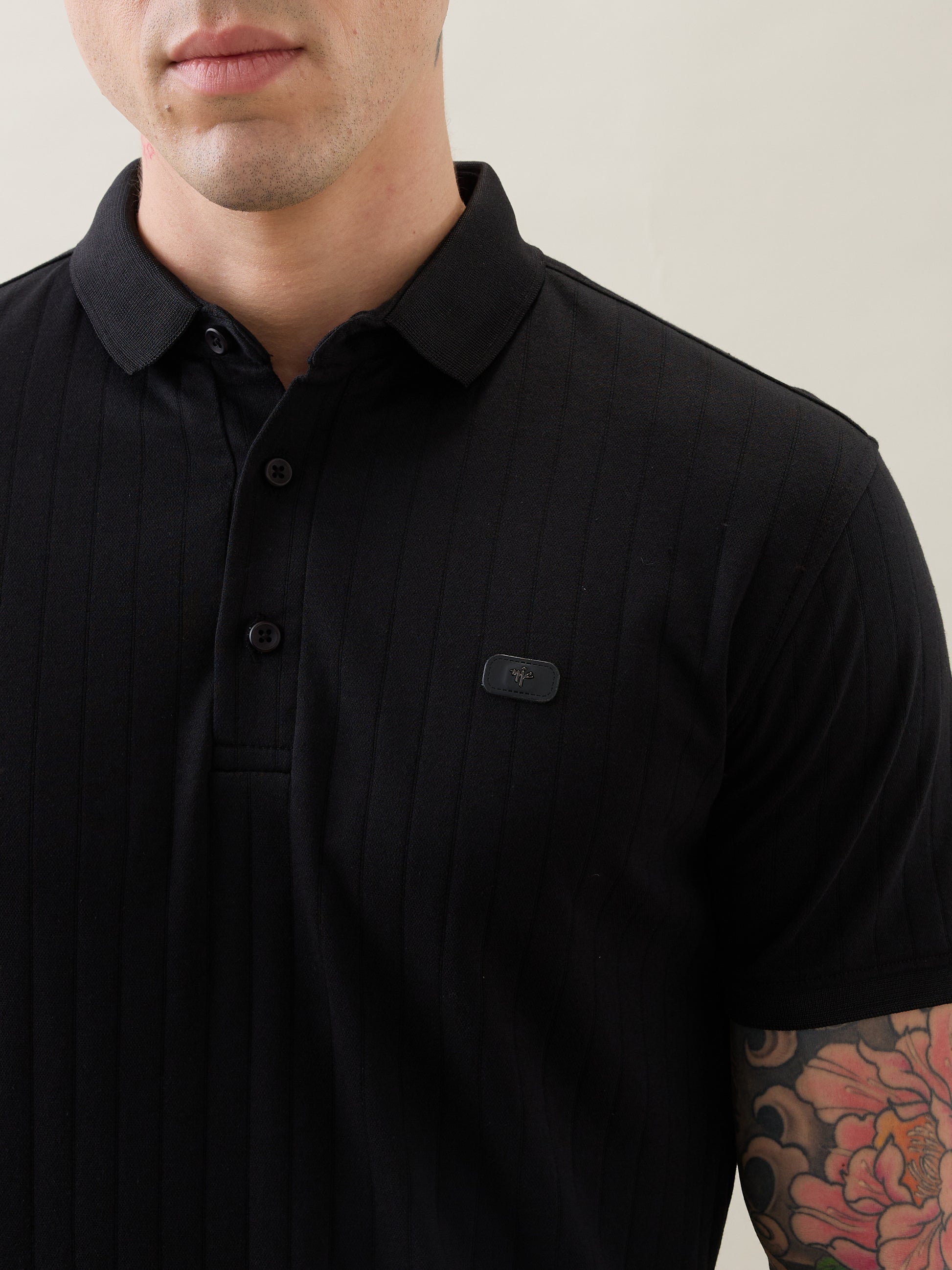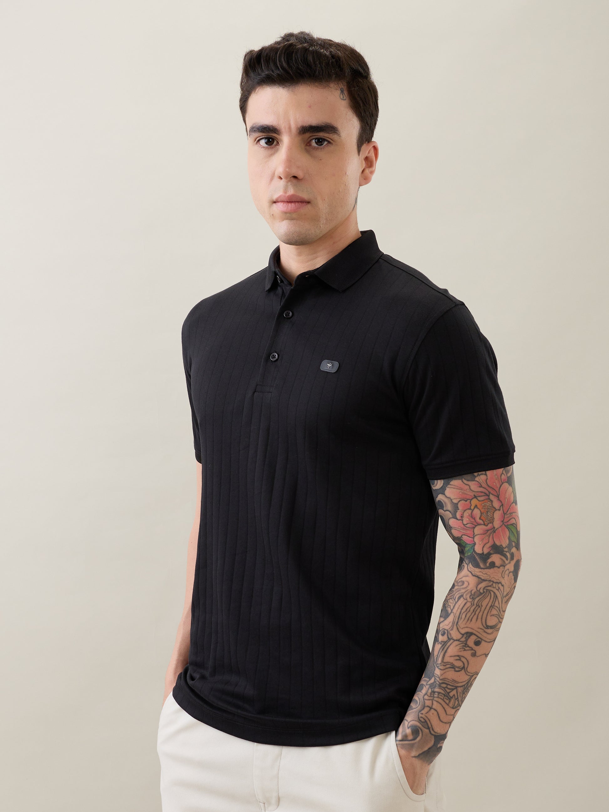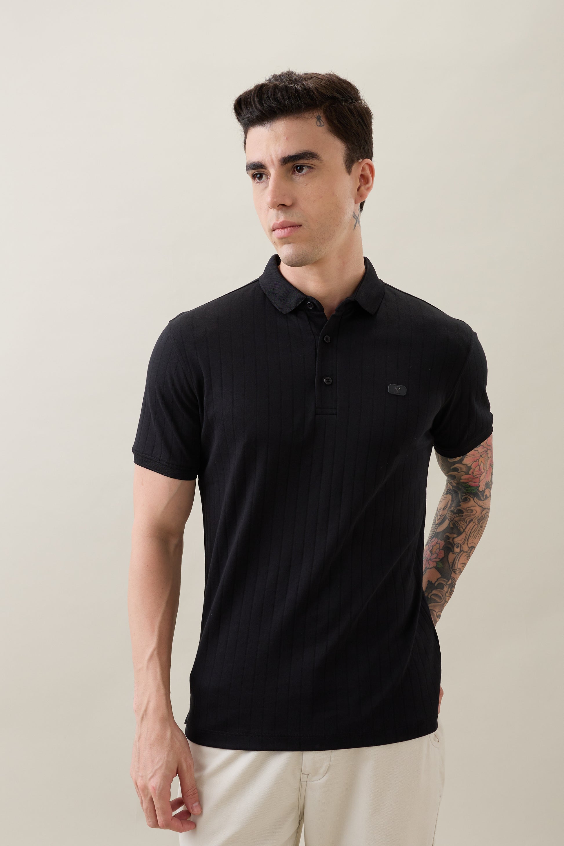The Nostrum Kinetic Black Polo Tee blends comfort, craftsmanship, and style in one. Made from soft polycotton fabric, it features a rib-knit texture, button-down polo collar, and ribbed sleeve cuffs that add structure and sophistication. Designed for durability and everyday versatility, it transitions effortlessly from workdays to weekends — making it a true wardrobe essential.