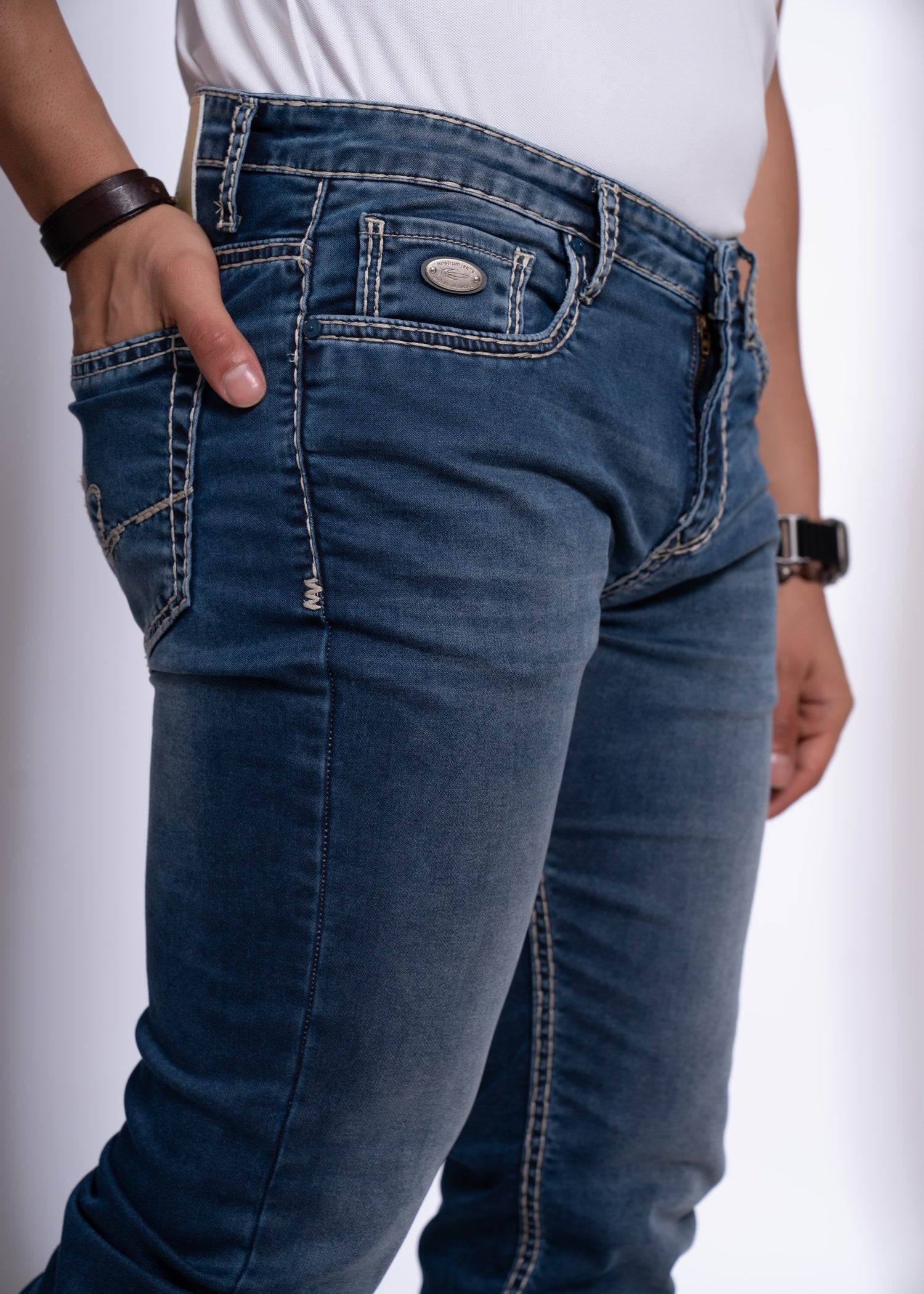 Nostrum’s SDL Fit Jeans redefine effortless style with a slim-tapered silhouette that’s both flattering and comfortable. Made from stretchable denim, these jeans feature classic mid-wash fading and detailed stitching, giving a premium look perfect for any occasion — from weekday fits to weekend outings.