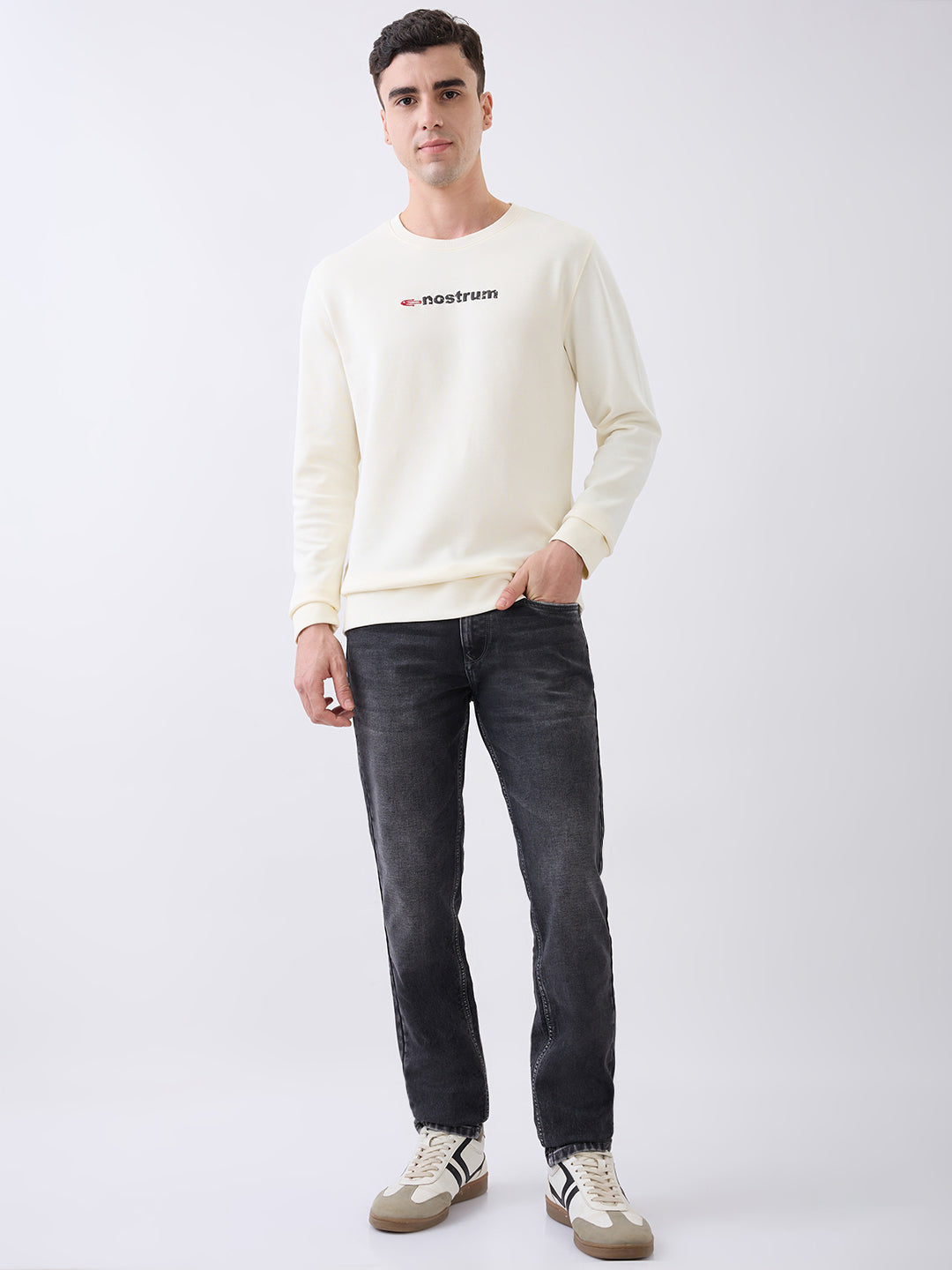The Panay white sweatshirt offers a clean, contemporary look with subtle statement detailing. Crafted from soft, premium fabric, it features a minimal front logo and a bold typographic print at the back that adds character without overpowering the design. The crisp white shade enhances its versatility, making it an easy choice for everyday wear, whether styled solo or layered.