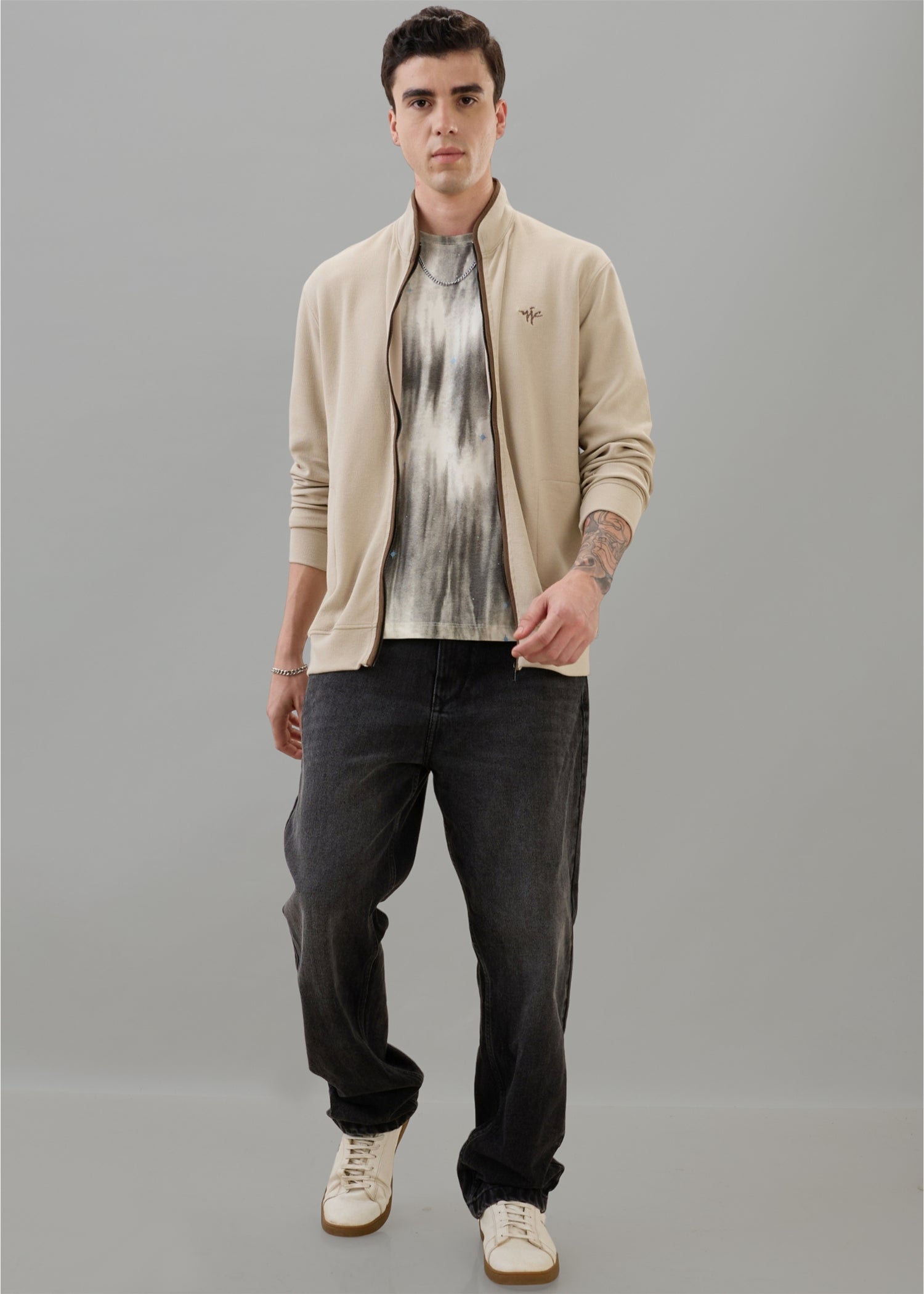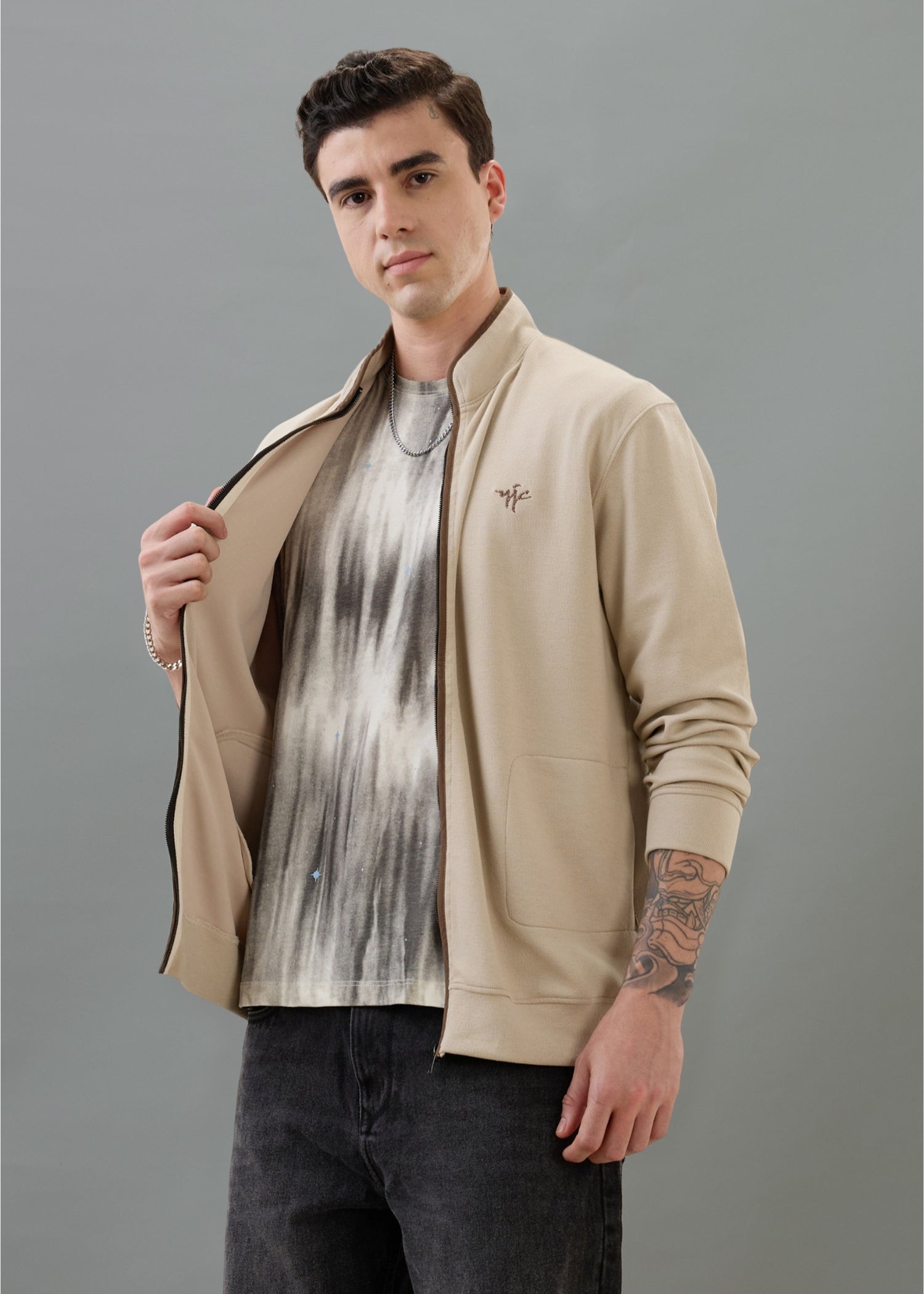 The Nostrum Sibilance Beige Full-Zip Sweatshirt blends clean minimalism with everyday comfort. Designed with a sleek mock-neck collar and a smooth full-length zipper, it brings smart athleisure style to your wardrobe. The soft cotton-blend fabric provides warmth without bulk, while ribbed cuffs and hem maintain structure. A subtle embroidered chest logo adds a refined touch, and the side pockets offer practical utility for daily wear. Perfect for layering, commuting, or relaxed weekend styling.