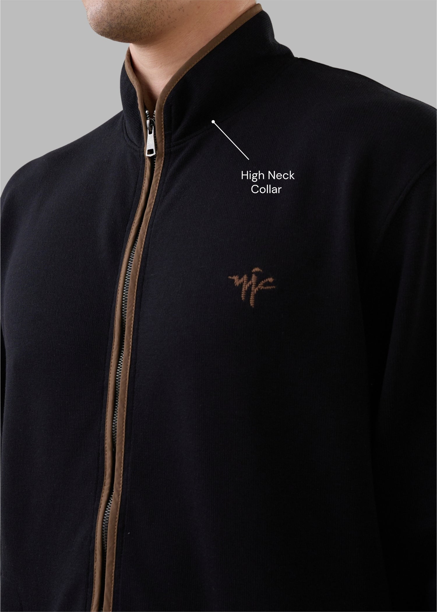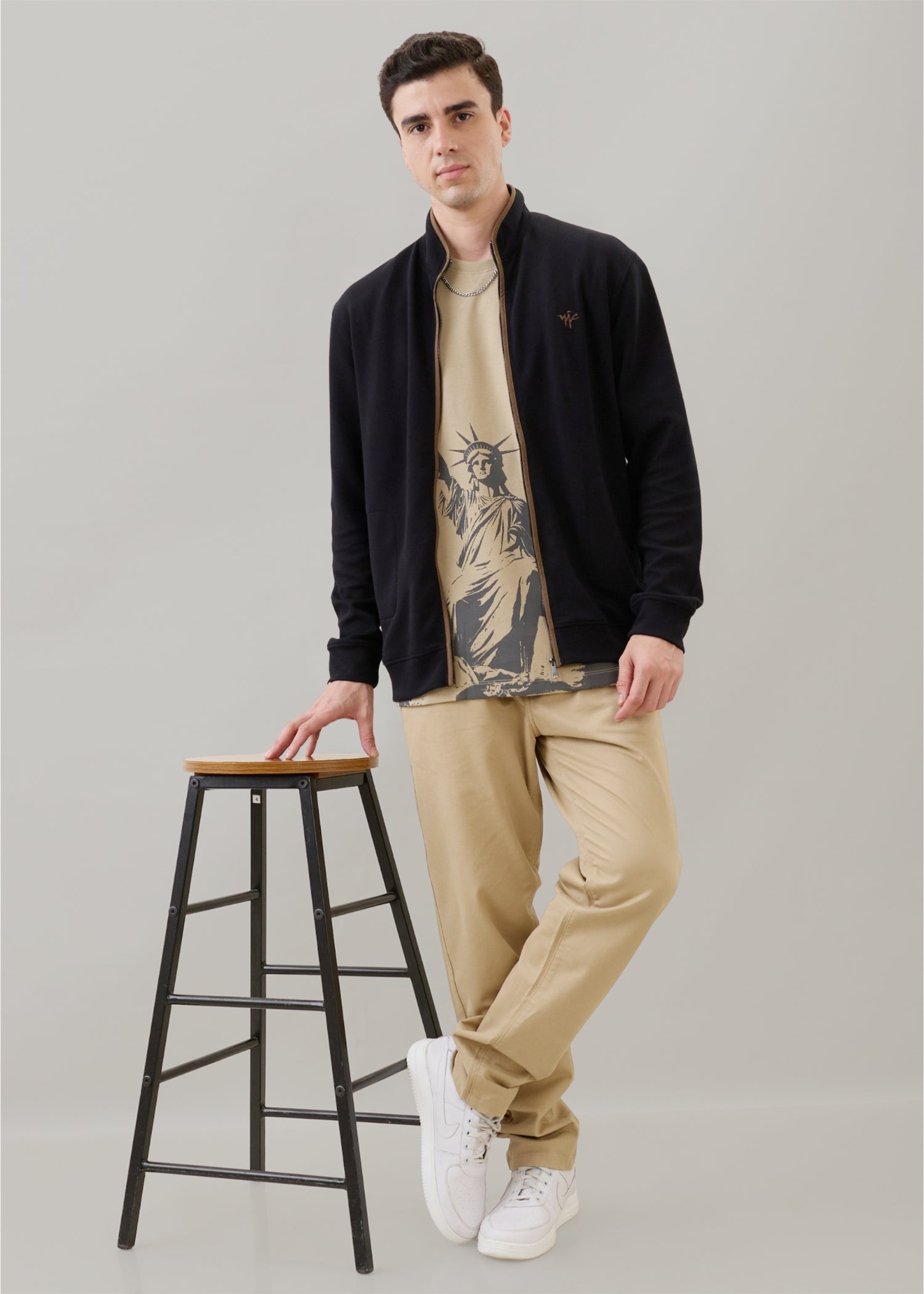 The Nostrum Sibilance Black Full-Zip Sweatshirt blends clean minimalism with everyday comfort. Designed with a sleek mock-neck collar and a smooth full-length zipper, it brings smart athleisure style to your wardrobe. The soft cotton-blend fabric provides warmth without bulk, while ribbed cuffs and hem maintain structure. A subtle embroidered chest logo adds a refined touch, and the side pockets offer practical utility for daily wear. Perfect for layering, commuting, or relaxed weekend styling.